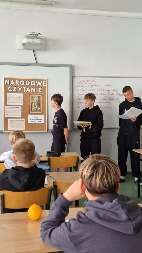 Tematem przewodnim była twórczość Jana Kochanowskiego – jednego z najwybitniejszych twórców polskiego renesansu. Licealiści zaprezentowali wybrane „Treny”, fraszki i pieśni poety oraz podzielili się ciekawostkami z jego życia.