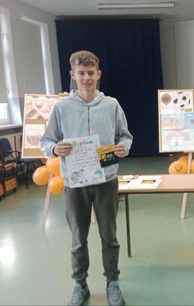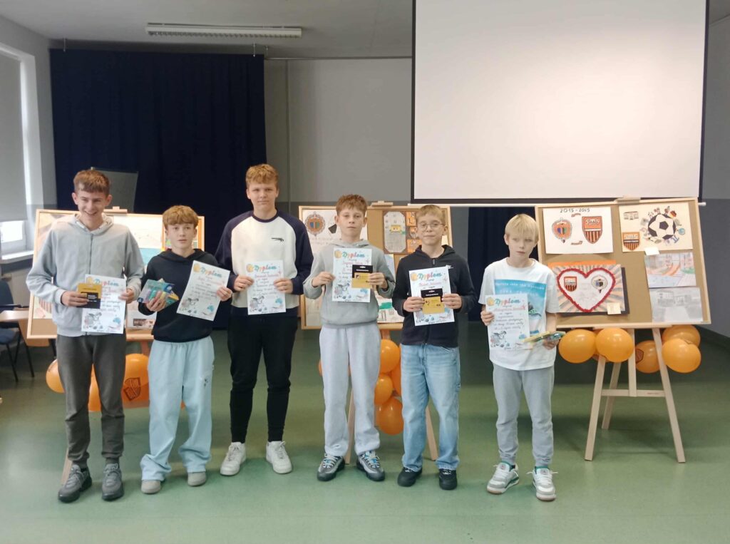 Wybrano 6 najpiękniejszych prac a ich autorzy 28 października 2025r. podczas apelu otrzymali dyplomy, nagrody rzeczowe i bony do Empik. Wszyscy uczniowie z klasy 5, 6, 7 i 8 dostali pyszne cukierki i pochwałę 🙂