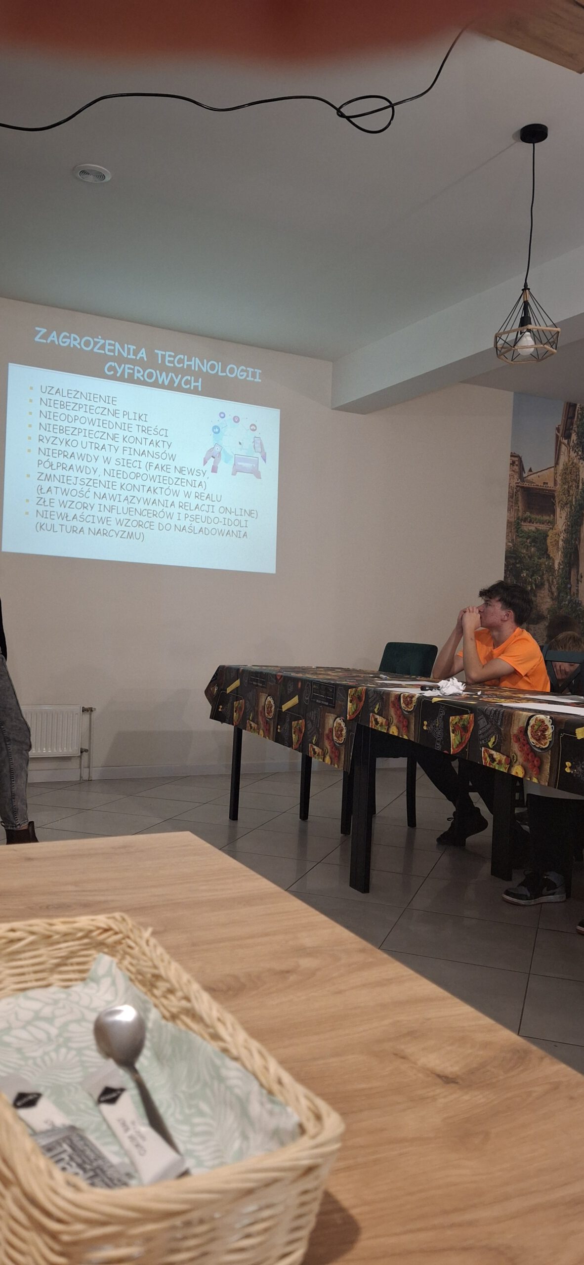 25 listopada uczniowie klasy 7 uczestniczyli w warsztatach profilaktycznych dotyczących cyberprzestrzeni, przemocy rówieśniczej i odpowiedzialności prawnej małoletnich. Warsztaty połączone były z integracją klasową, wspólnymi zabawami i wykonywaniem pizzy. Dziękujemy #Pizzeria Affamato Glogów# za pyszną pizze i nowe doświadczenia.