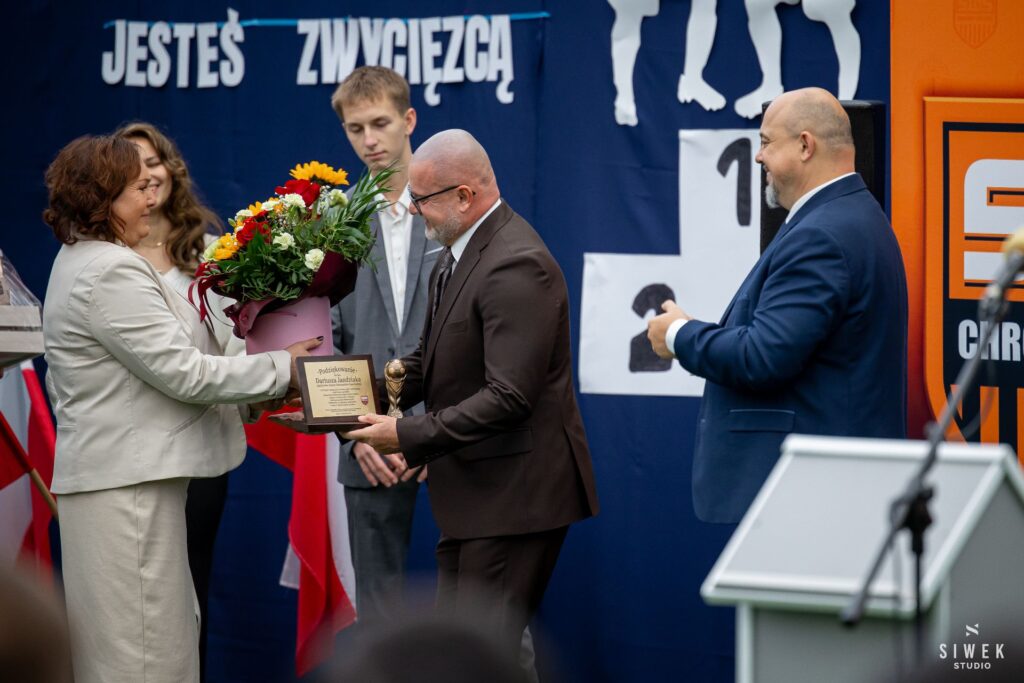 Założyciel Szkoły, Pan Dariusz Jandziak wraz z dyrektorem wręczył zaproszonym gościom oraz obecnej i przeszłej kadrze pamiątkowe medale i podziękowania.
